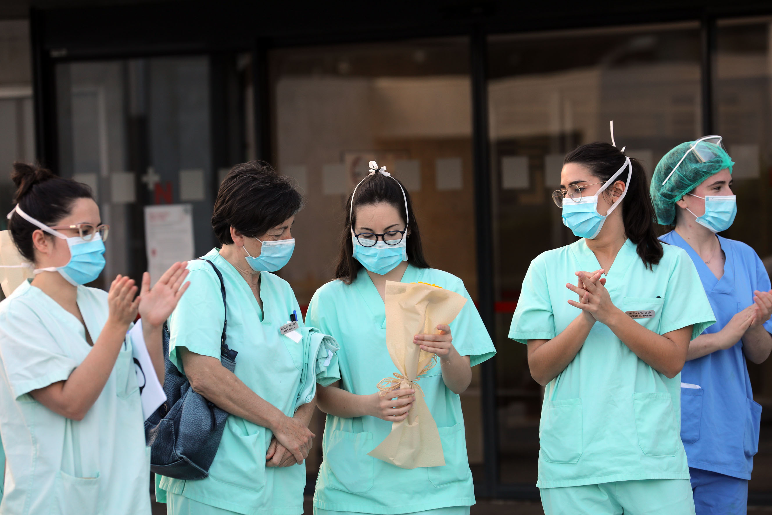 T: APLAUSO SANITARIO DE LAS 20 H , LA FEDERACIÓN DE COROS DE NAVARRA ENTREGA FLORES A SANITARIOS Y NIÑOS EN PEDIATRRÍA DE VIRGEN DEL CAMINO , CRISIS CORONAVIRUS